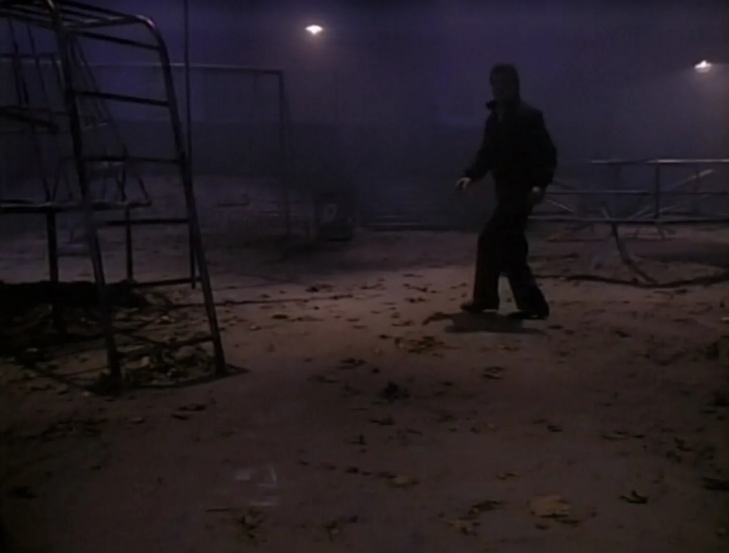 We see more long, steady shots of Charles at the playground, only his eyes illuminated. He speaks, as if to the ghost of his childhood bully, Ralph, telling him to leave his son alone. We even see Ralph for a brief moment, menacing his target with a large stick before he throws it at a light bulb, shattering it.